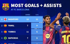 12场5球6助,拉什福德是巴萨本赛季队内参与进球最多的球员